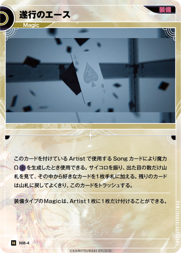 サイコロを振り、4なら山札からArtistを1枚選び、相手に見せて手札に加え、このカードをトラッシュする。