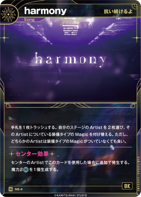このカードはすべてのタイプのSongカードを使用できる。ただし、赤タイプを含まないSongを使用する場合、魔力αを1個消費しなければ、使用できない。