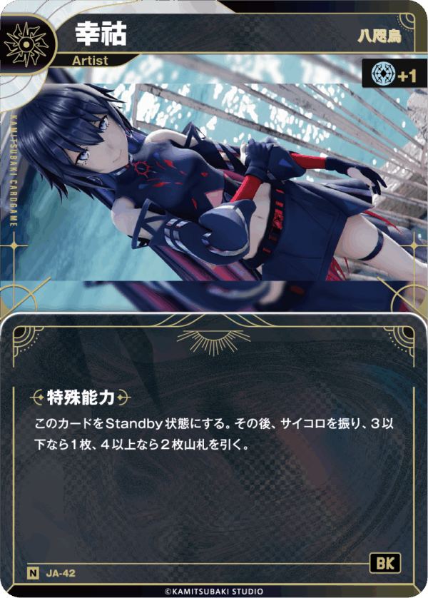 自分のターンに1回使える。サイコロを振り、偶数なら山札を1枚引く。