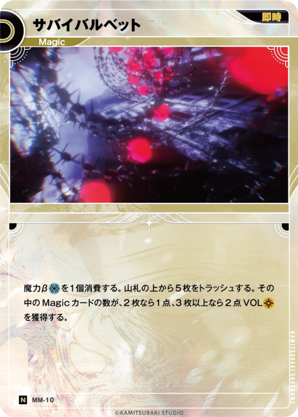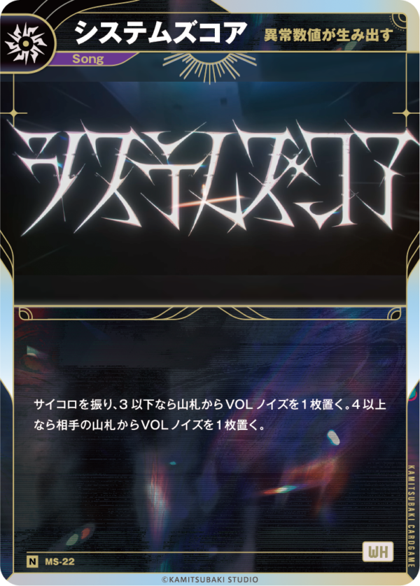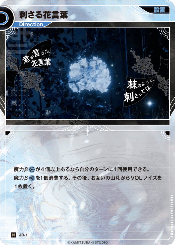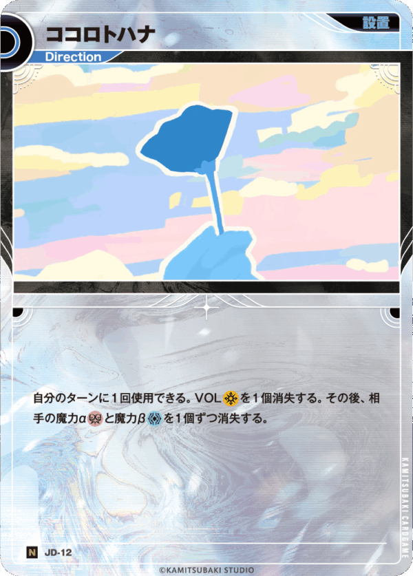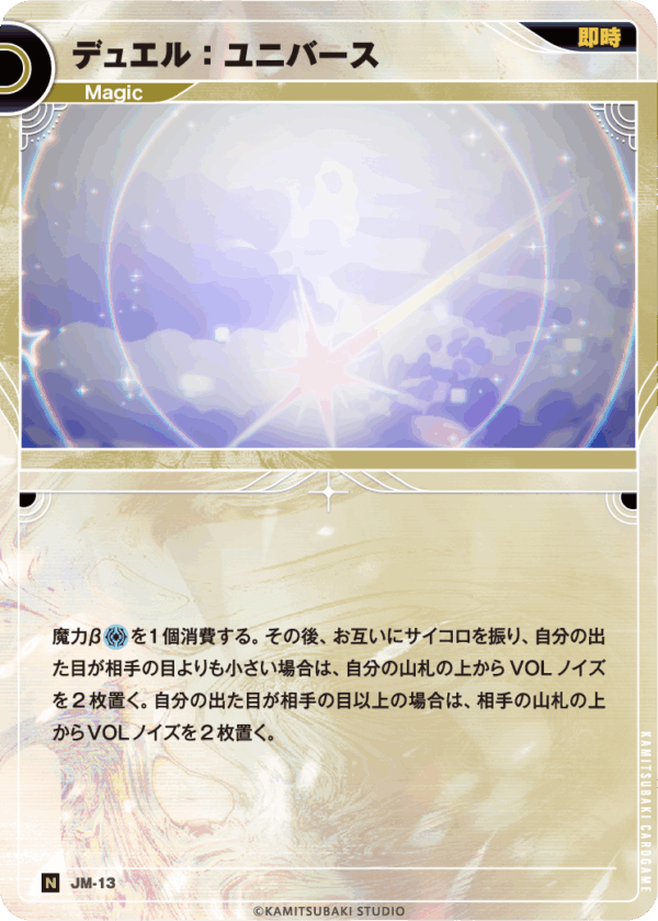 自分のターンに1回使用できる。魔力βを1個消費する。その後、サイコロを振り、4以上なら相手の山札からVOLノイズを1枚置く。