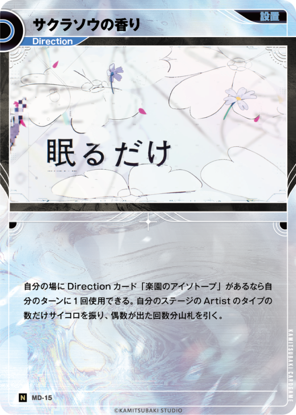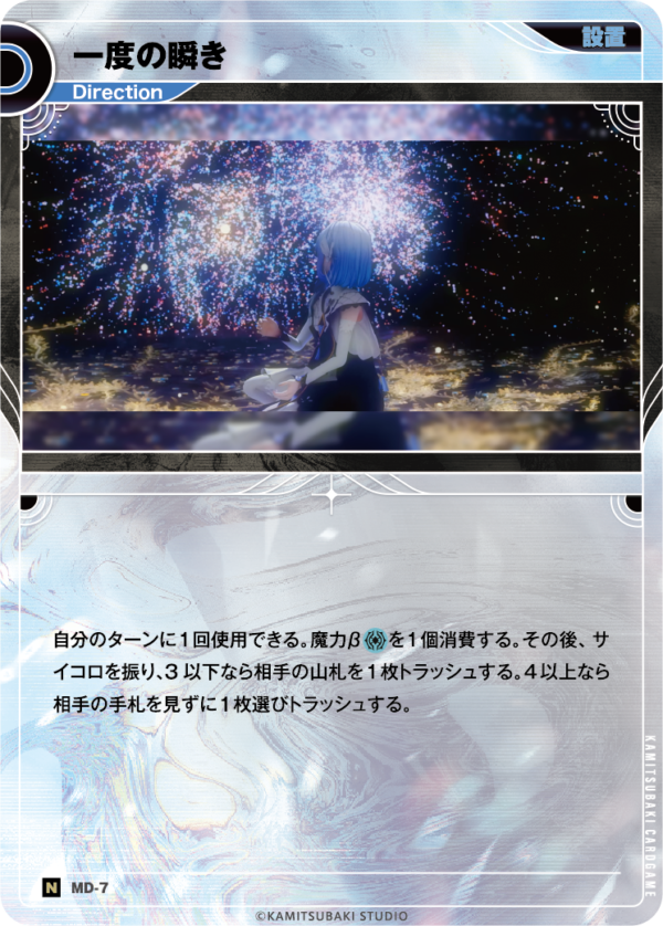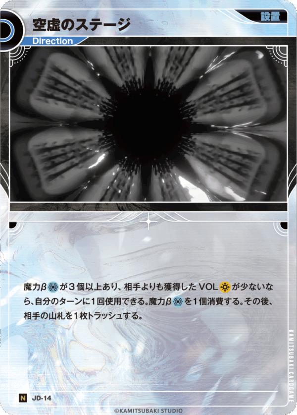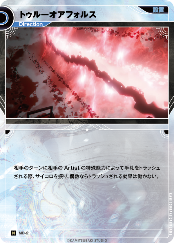 サイコロを振り、5以上なら相手の場のDirectionを1枚選び、トラッシュする。