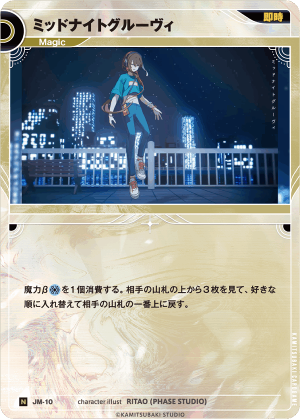 山札の上から5枚を見て、即時タイプのMagicを1枚選び、相手に見せて手札に加える。