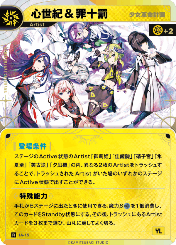 魔力βが2個以上あるなら、自分のターンに1回使用できる。手札からArtistカードを2枚トラッシュする。その後、魔力α