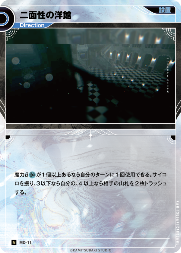 魔力Ωが3個以上あるなら、自分のターンに1回使用できる。サイコロを振り、奇数なら相手の魔力Ω
