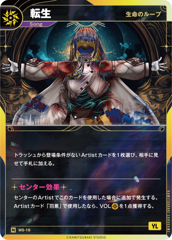 お互いのSongの効果によって自分の山札をトラッシュしたとき、トラッシュされたカードがArtistならそのカードをトラッシュから手札に加える。