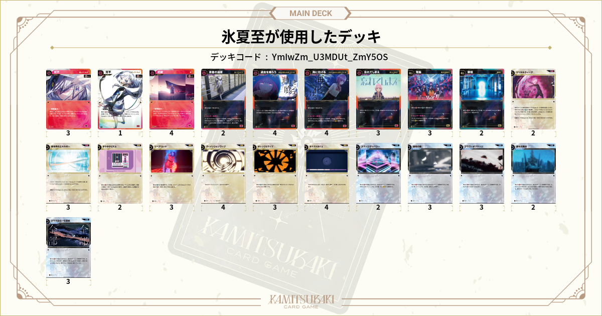 1/27に放送された、「神椿TCG倶楽部 vol.7」にて氷夏至が使用したデッキをご紹介します。