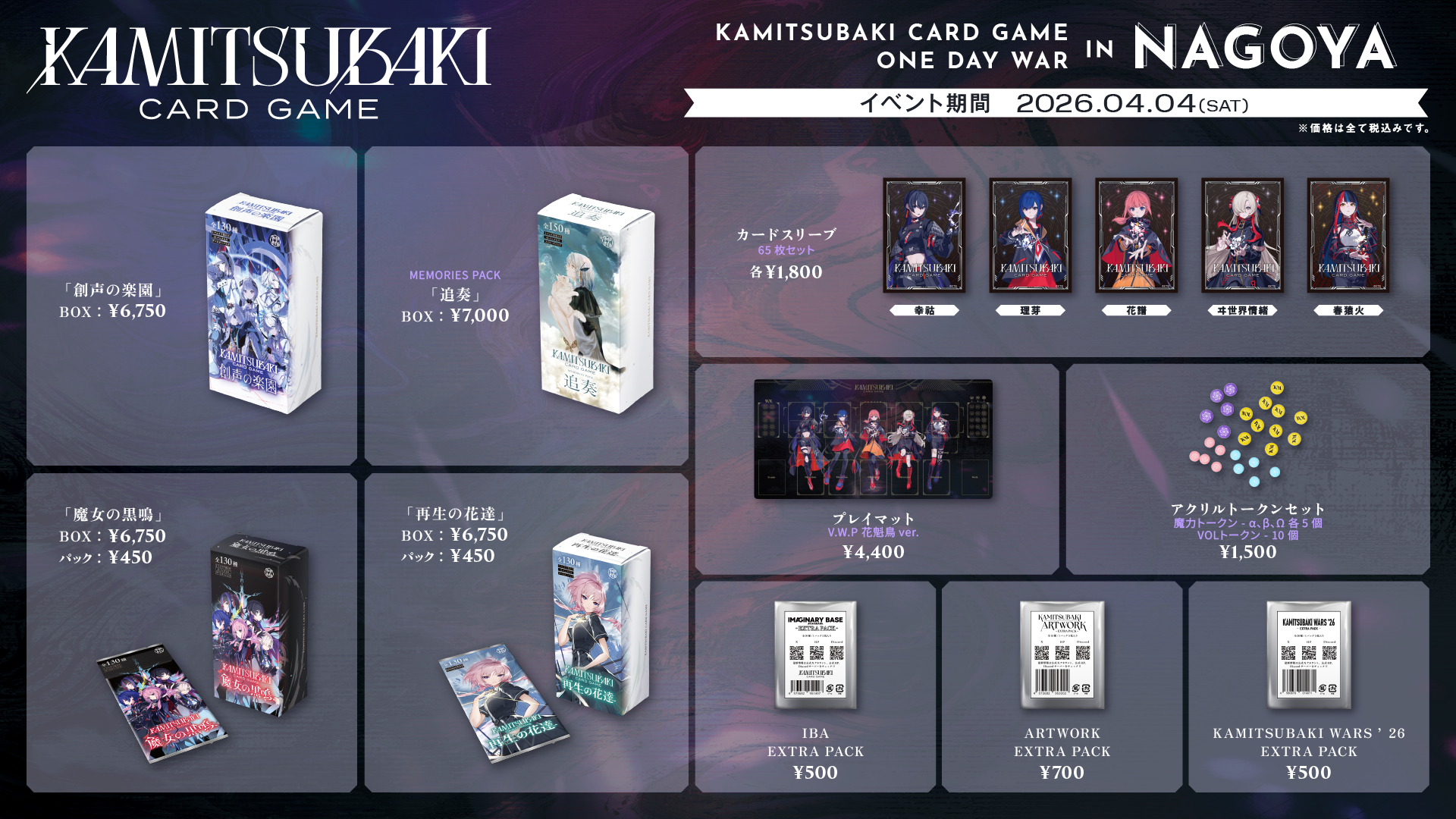 2026年4月4日(土)、ミーティングスペースAP名古屋にて、『KAMITSUBAKI CARD GAME ONE DAY WAR in NAGOYA』を開催いたします。